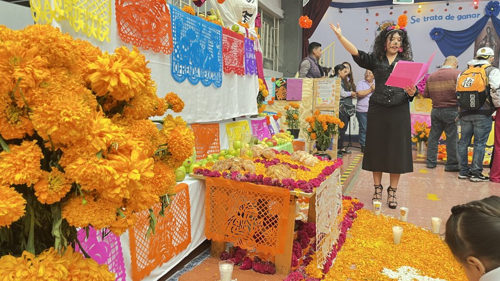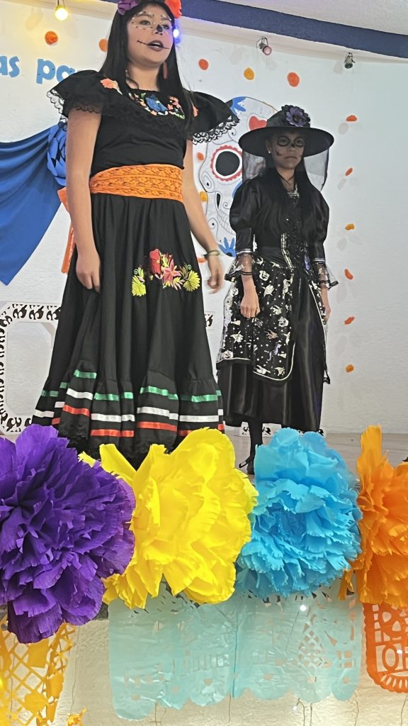 El programa cultural incluyó demostraciones de calaveritas literarias por parte de los alumnos de Primaria, Secundaria y Bachillerato, así como el alegre “Baile de la Bruja”, que hizo disfrutar a todos los presentes.